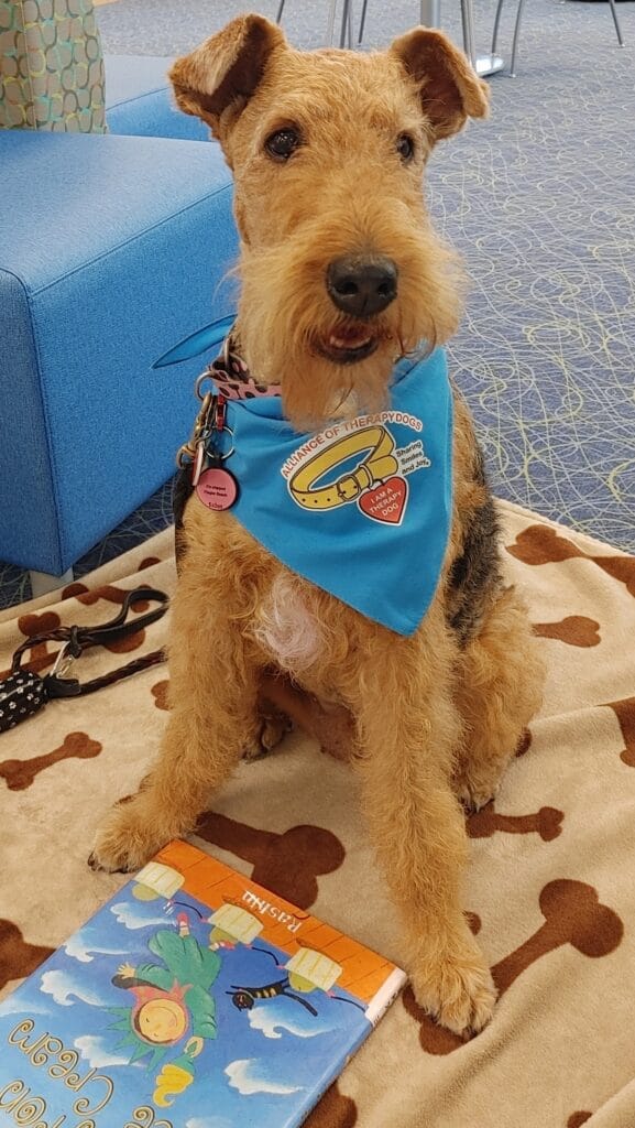 Meet Spirit, an awesome Airedale Terrier! Her favorite “job” is listening to stories from beginning readers at schools and libraries. Her favorite “sport” is “sniffing” and she competes with the National Association of Canine Scent Work. She is curious about everything and loves new situations where she can meet dogs and people of all ages.